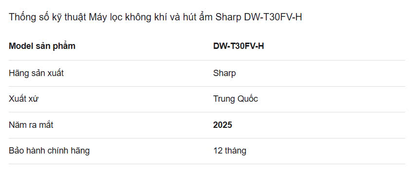 Máy lọc không khí và hút ẩm Sharp DW-T30FV-H được sản xuất năm 2025