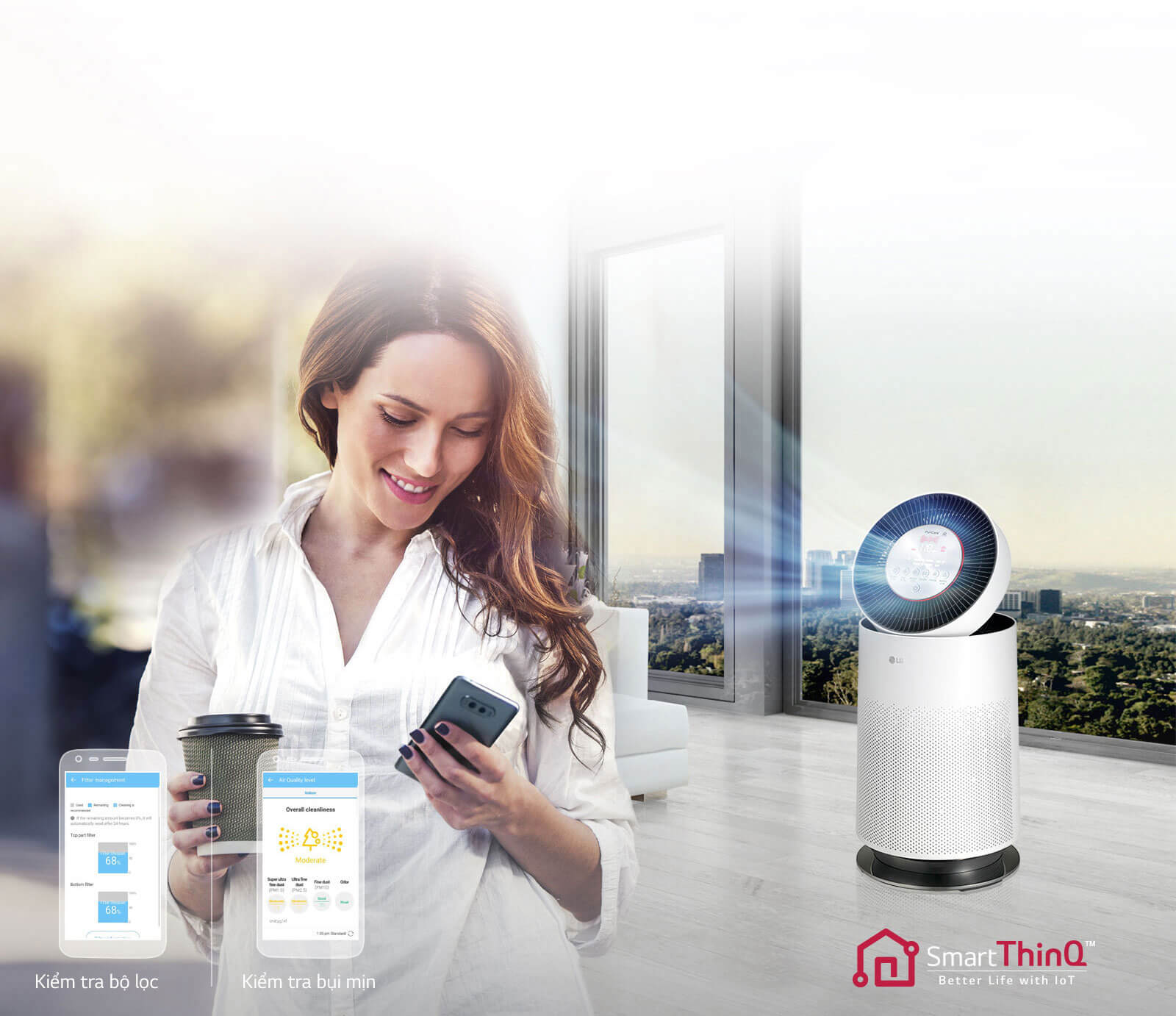 Gợi ý model LG: LG Puricare 360° hoặc LG AS65GDWB0 (có bộ lọc khí độc, kết nối LG ThinQ).