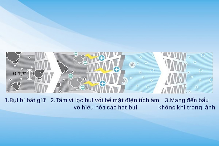 • Ion âm và ion dương: Plasmacluster Ion phát ra cả ion âm và ion dương. Các ion này sẽ kết hợp với các hạt bụi mịn, vi khuẩn, virus, nấm mốc và các phân tử gây mùi trong không khí. Khi các ion này tác động vào các tác nhân gây ô nhiễm, chúng sẽ làm giảm hoặc tiêu diệt sự hoạt động của các vi sinh vật, từ đó cải thiện chất lượng không khí.