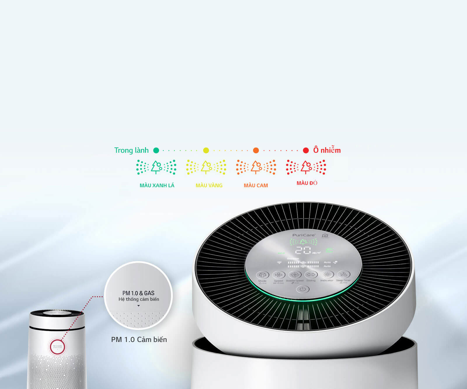 - Cảm biến thông minh tự động điều chỉnh chế độ lọc theo mức độ ô nhiễm.