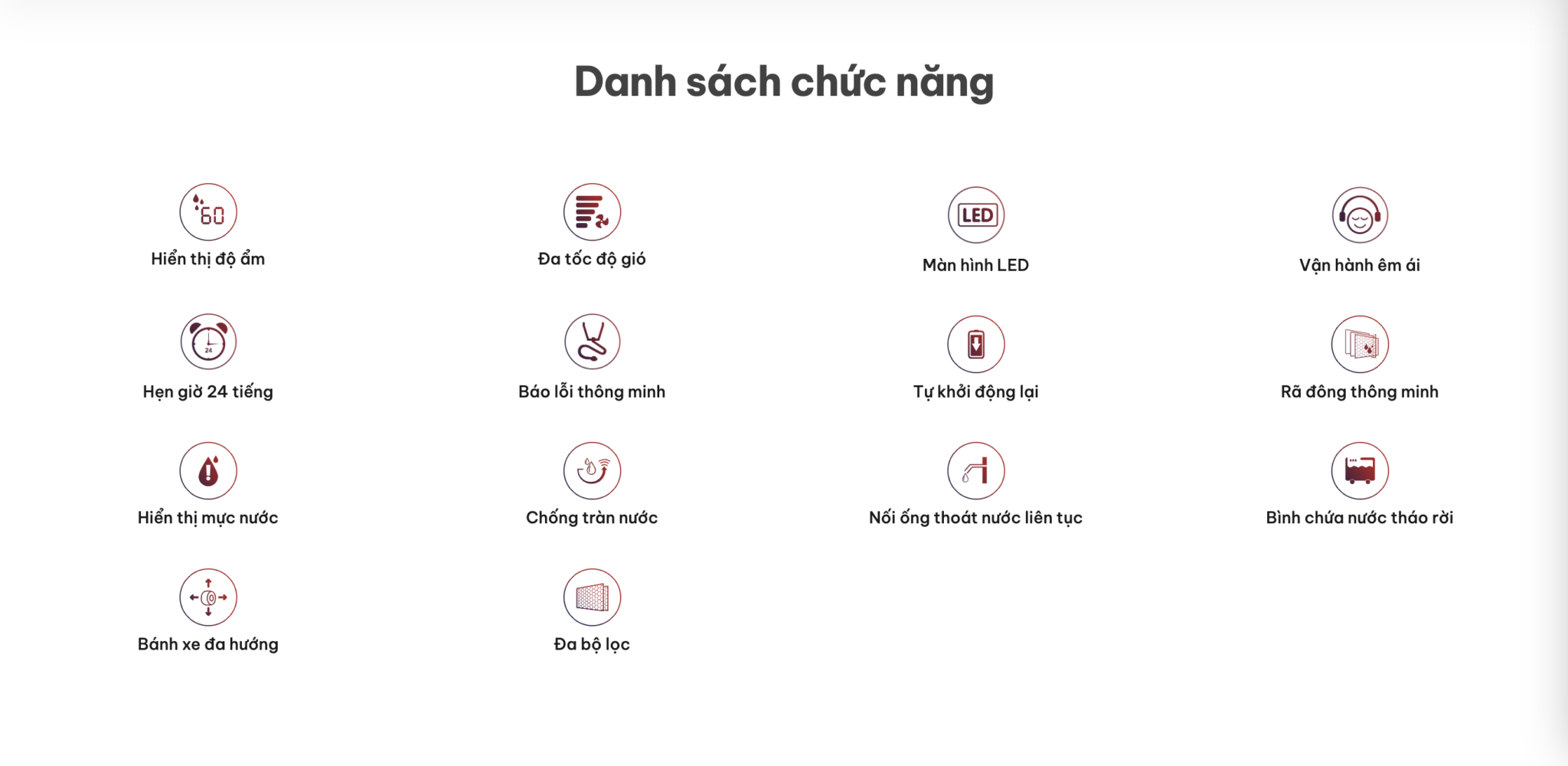 Hiệu suất hút ẩm ổn định, phù hợp với khí hậu ẩm ở Việt Nam.