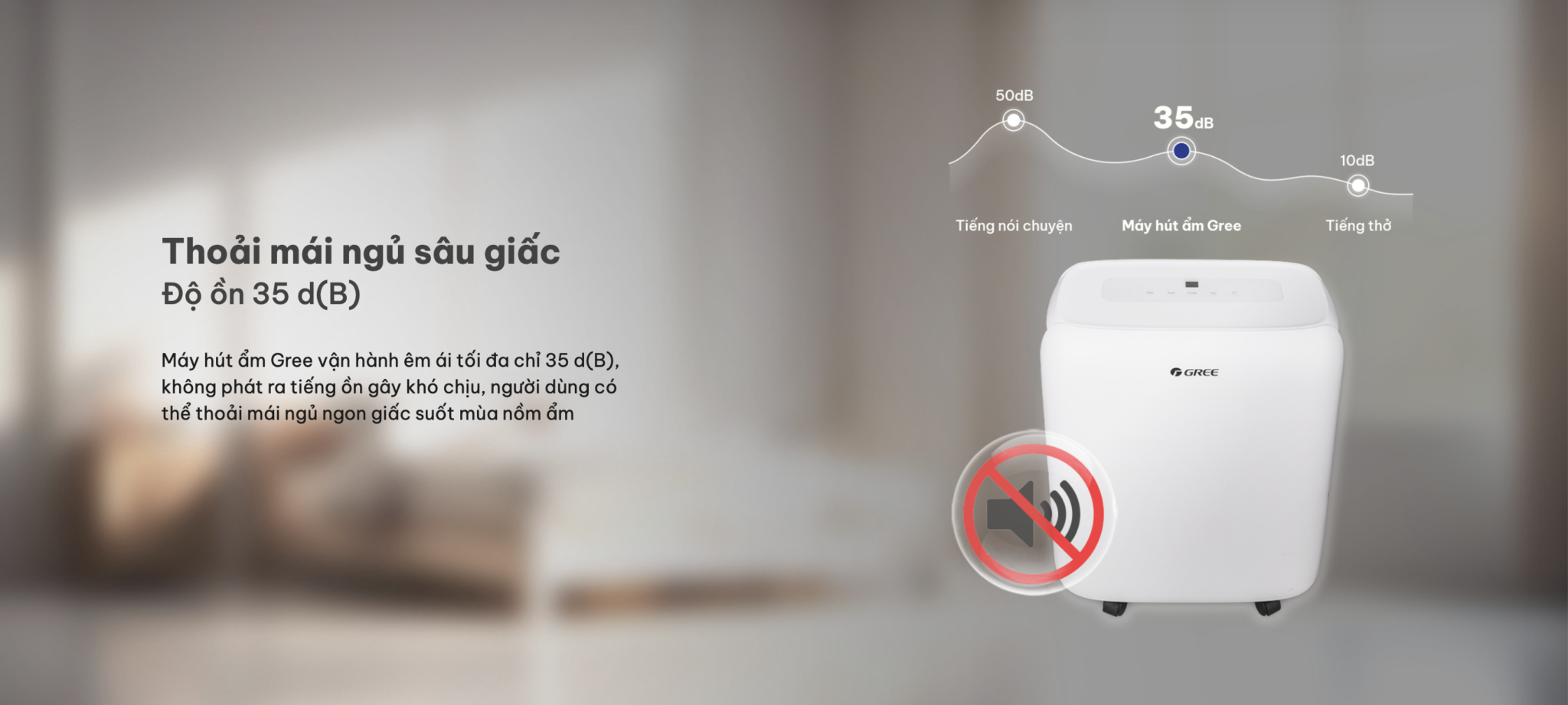 Máy hút ẩm Gree Santo GDN10BC độ ồn rất thấp chỉ dưới 40dB, không làm ảnh hưởng nhiều đến giấc ngủ, giúp cho người sử dụng có thể đặt để mọi nơi đều phù hợp