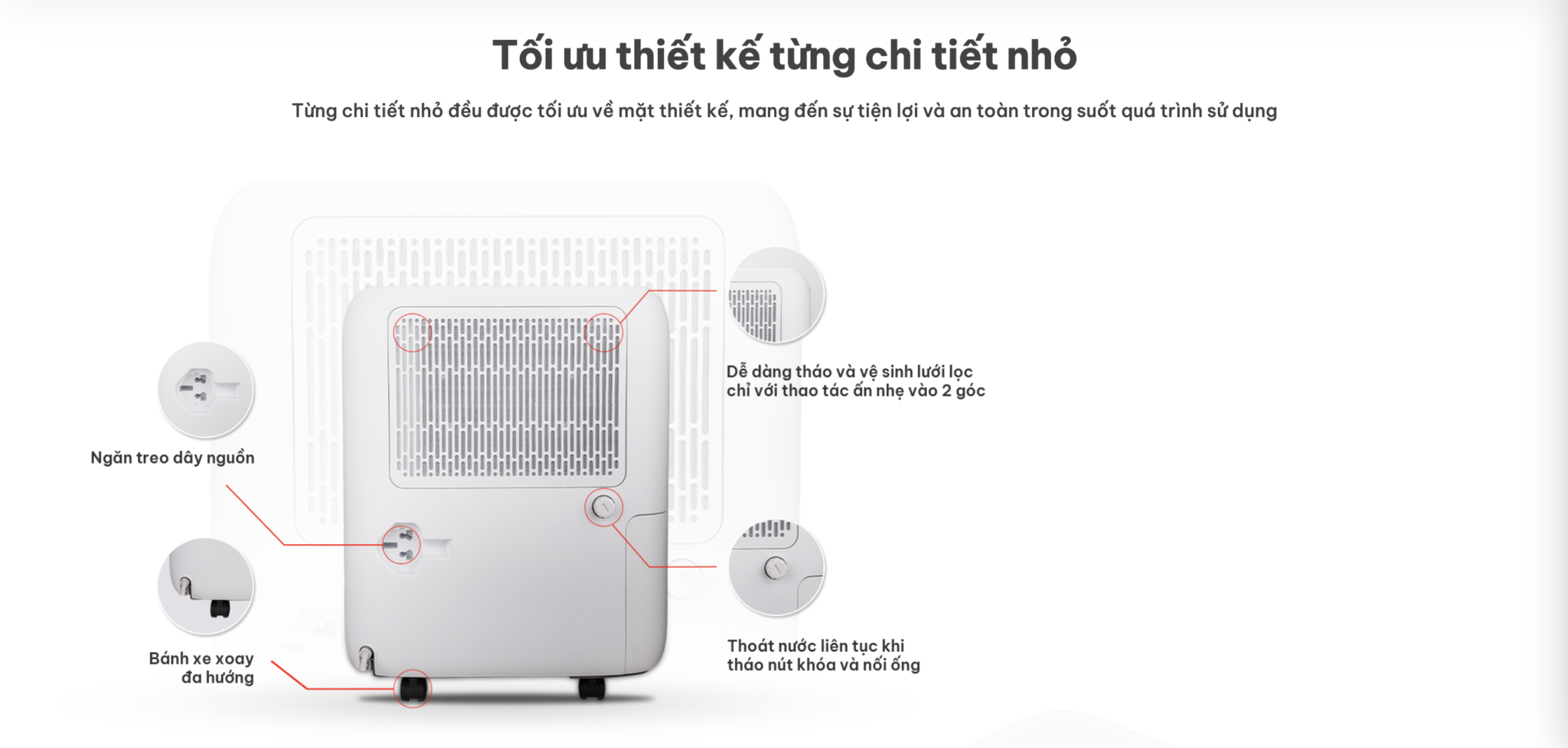 Thỏa sức trải nghiệm với tính năng và công suất hút ẩm