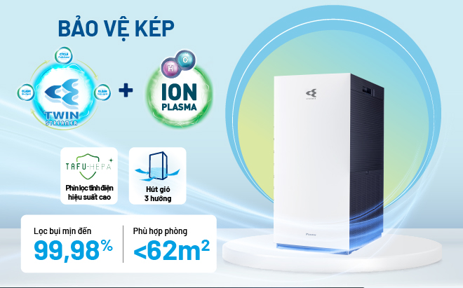 - Trang bị 2 bộ phát Streamer (Twin Streamer) tăng gấp đôi hiệu quả lọc khí