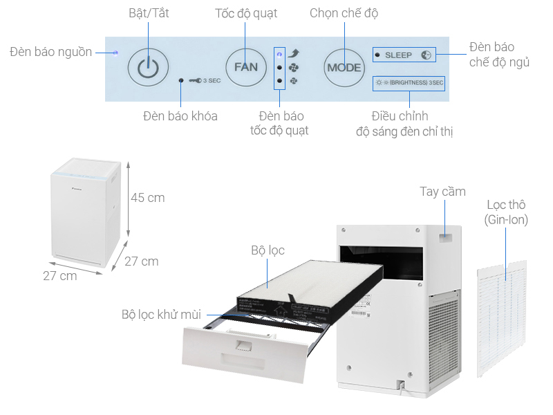 >>> Xem thêm : Máy lọc không khí Daikin MC30YVM7