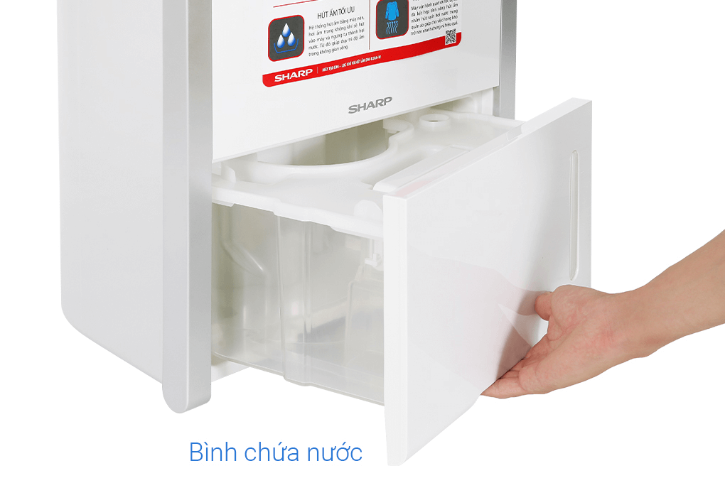 Máy lọc không khí hút ẩm Sharp DW-D20A-W có dung tích bình chưa lên tới 4 lít, một ngày trung bình có thể hút 20 lít nước, ngoài ra có thể nối ống cho nước chảy từ bình chứa ra ngoài mà không cần tháo bình