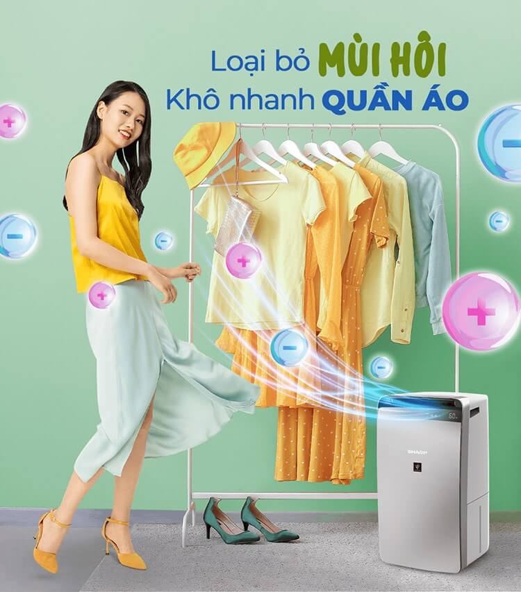 Máy lọc không khí hút ẩm Sharp DW-J27FV-S vận hành ở chế độ quạt tối đa kết hợp tính năng hút ẩm nhằm hút sạch hơi nước trong quần áo giúp cho việc hong khô trở nên nhanh chóng và hiệu quả hơn. Ngoài ra, trong quá trình hong khô, máy có thể tạo ra các Plasmacluster ion có tác dụng diệt khuẩn và khử mùi quần áo.