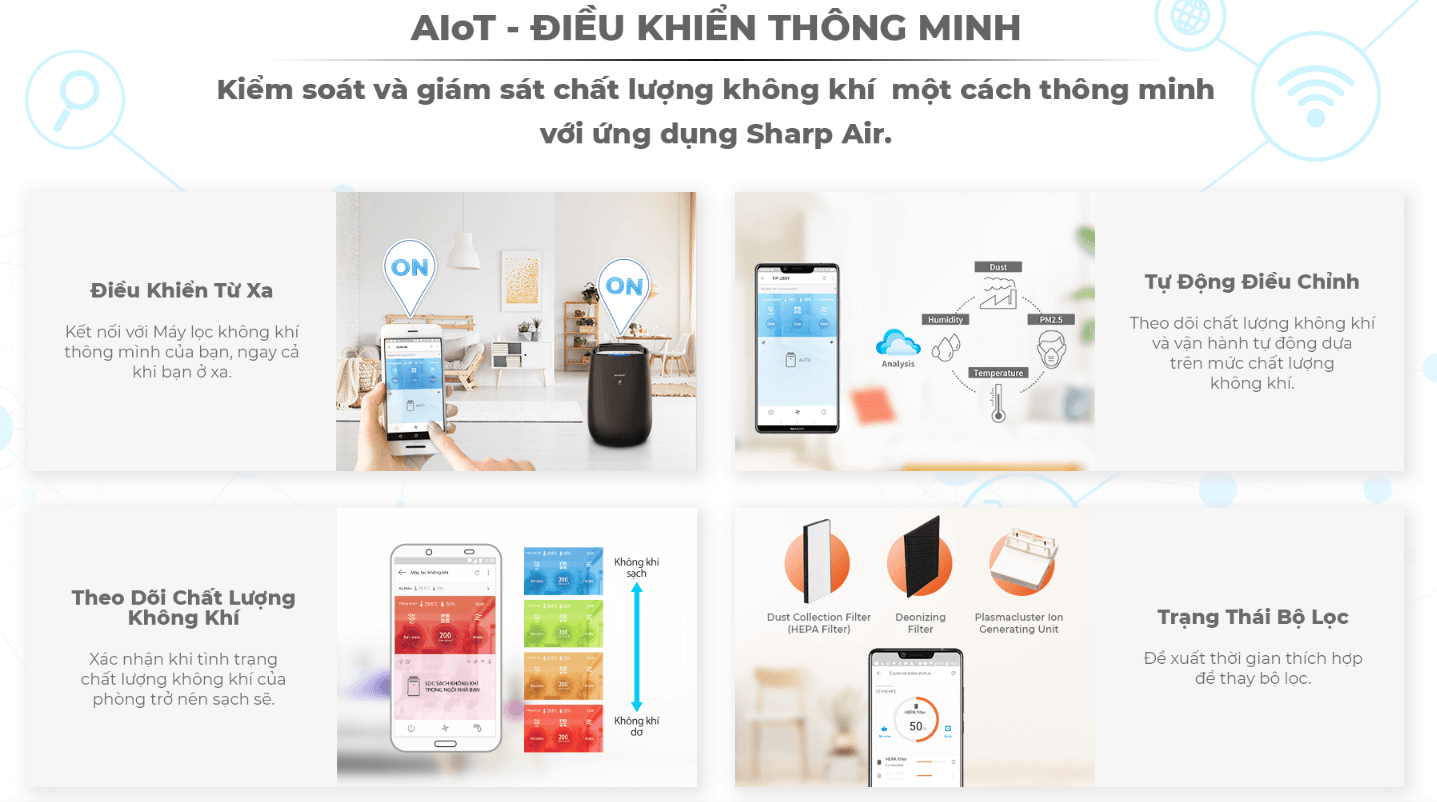 >> Xem thêm: Máy lọc không khí AIOT Sharp FP-J80EV-H