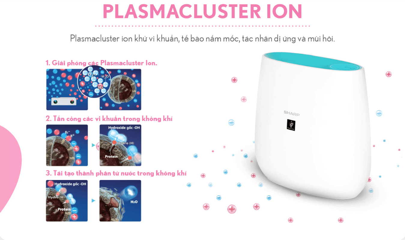 Công nghệ Plasmacluster ion ức chế đến 99% vi khuẩn, virus, nấm mốc, mùi hôi, chất dị ứng