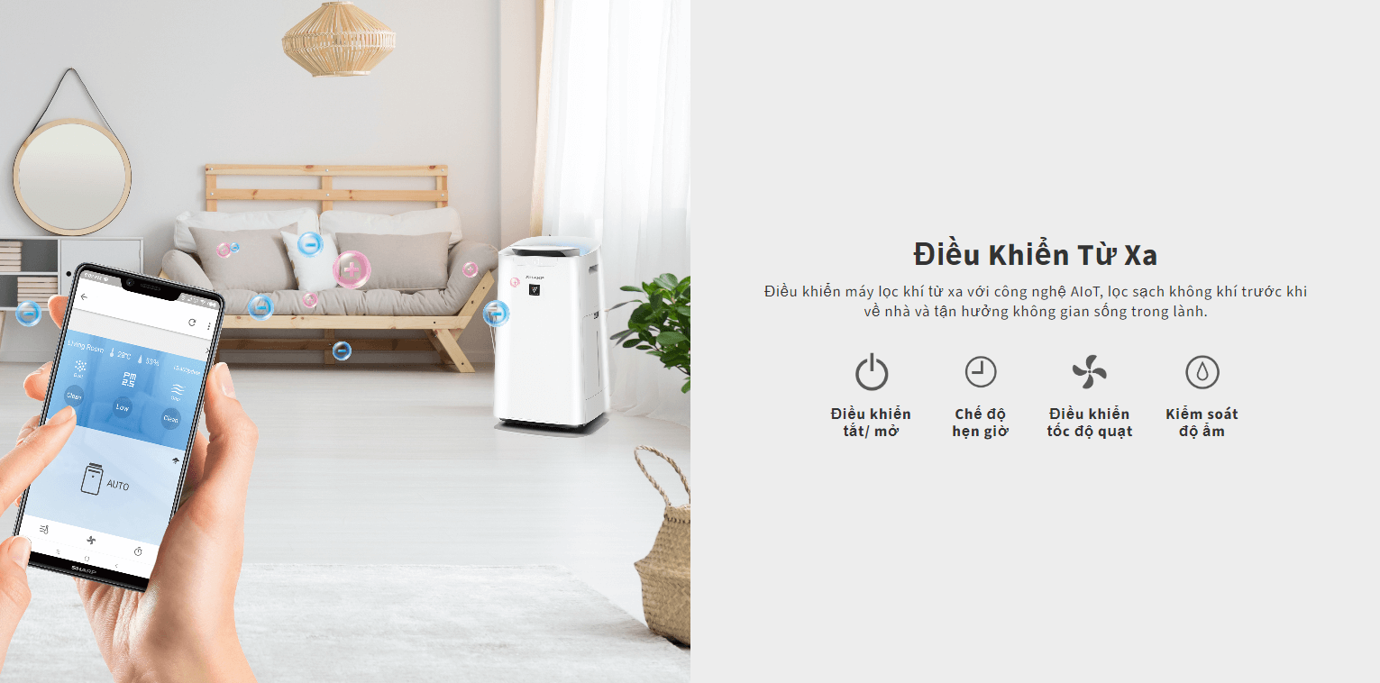 - Công nghệ Plasmacluster ion ức chế đến 99% vi khuẩn, virus, nấm mốc, mùi hôi, chất dị ứng