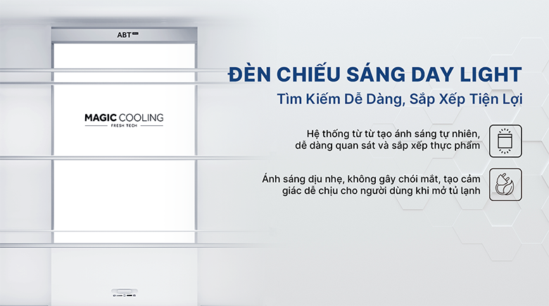 Khi hệ thống làm lạnh hoạt động, mô-đun ABT Pro xúc tác không khí và tạo ra các hạt phân tử ion oxy âm phân hủy vi khuẩn và phân tử mùi, đảm bảo môi trường bảo quản thực phẩm trong lành và an toàn, giữ cho thực phẩm nhà bạn luôn tươi ngon, không bị ám mùi khó chịu ảnh hưởng tới hương vị.